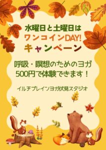 毎週水曜日と土曜日は「呼吸・瞑想のためのヨガ」をワンコイン500円で体験できます!